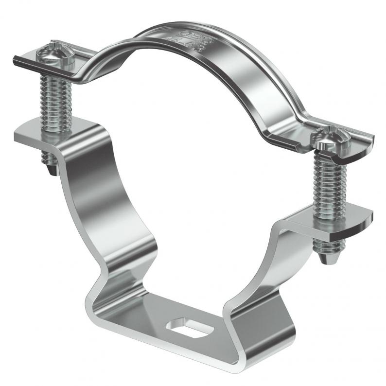 Spacer clip for the installation of pipes and cables on walls, ceilings and floors. With self-locking upper part. Fastening via slot. From the clip size of 20 suitable for installation with a nail device or bolt-firing device.