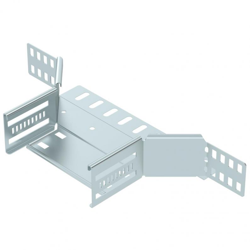 Mounting/branch piece for the creation of a horizontal branch or cross-over, fitting for lock and screw-on cable trays of side height 60 mm. Screwless mounting with double clamps or screw connection with FRS truss-head screws and M6 combination nuts. Can be used in indoor areas. Fastening material must be ordered separately.