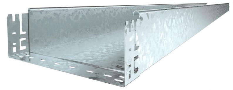 Unperforated cable tray with integrated quick fastening system. The usable length of the cable tray is 3,000 mm.