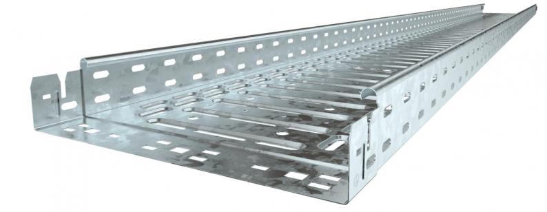 The cable tray has continuous side perforations of 7 x 20 mm for the installation of additional connection and mounting components.