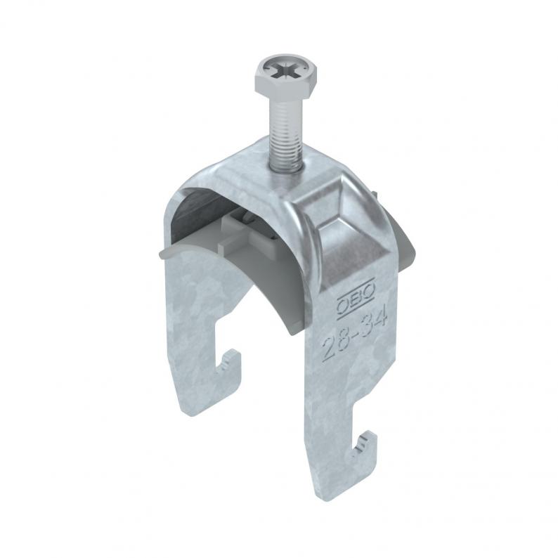 Clamp clip with U-foot, plastic pressure sleeve made of polypropylene. For vertical and horizontal mounting of 1 single cable on a C-profile rail. For slot width 18–22 mm. With 1-start screw thread on pressure sleeve, universal hexagonal screw head WAF10, with slot and cross recess. Suitable for assembly indoors and outdoors. We recommend the use of a counter-sleeve.