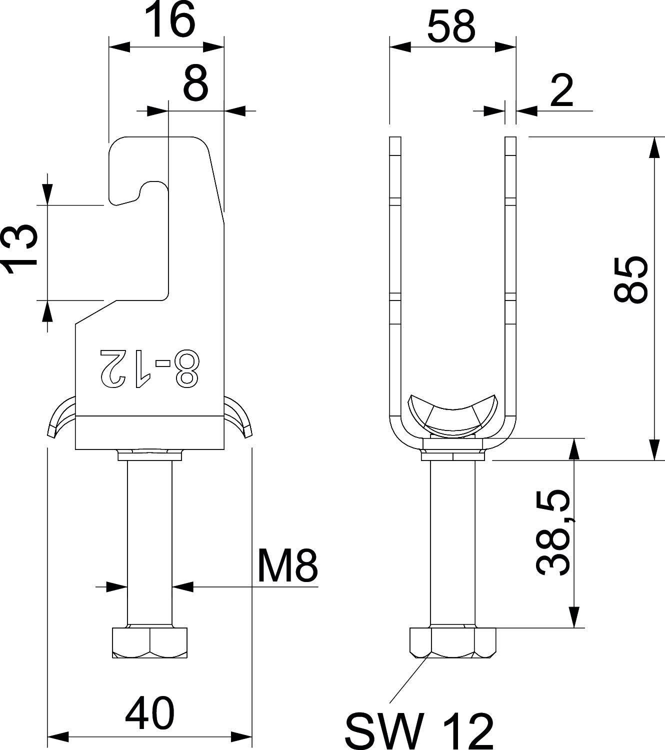| Dimension G (mm) | M8 |