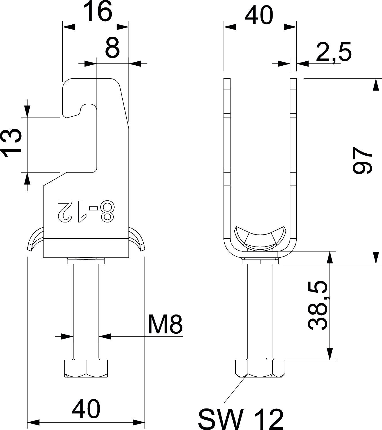 | Dimension G (mm) | M8 |