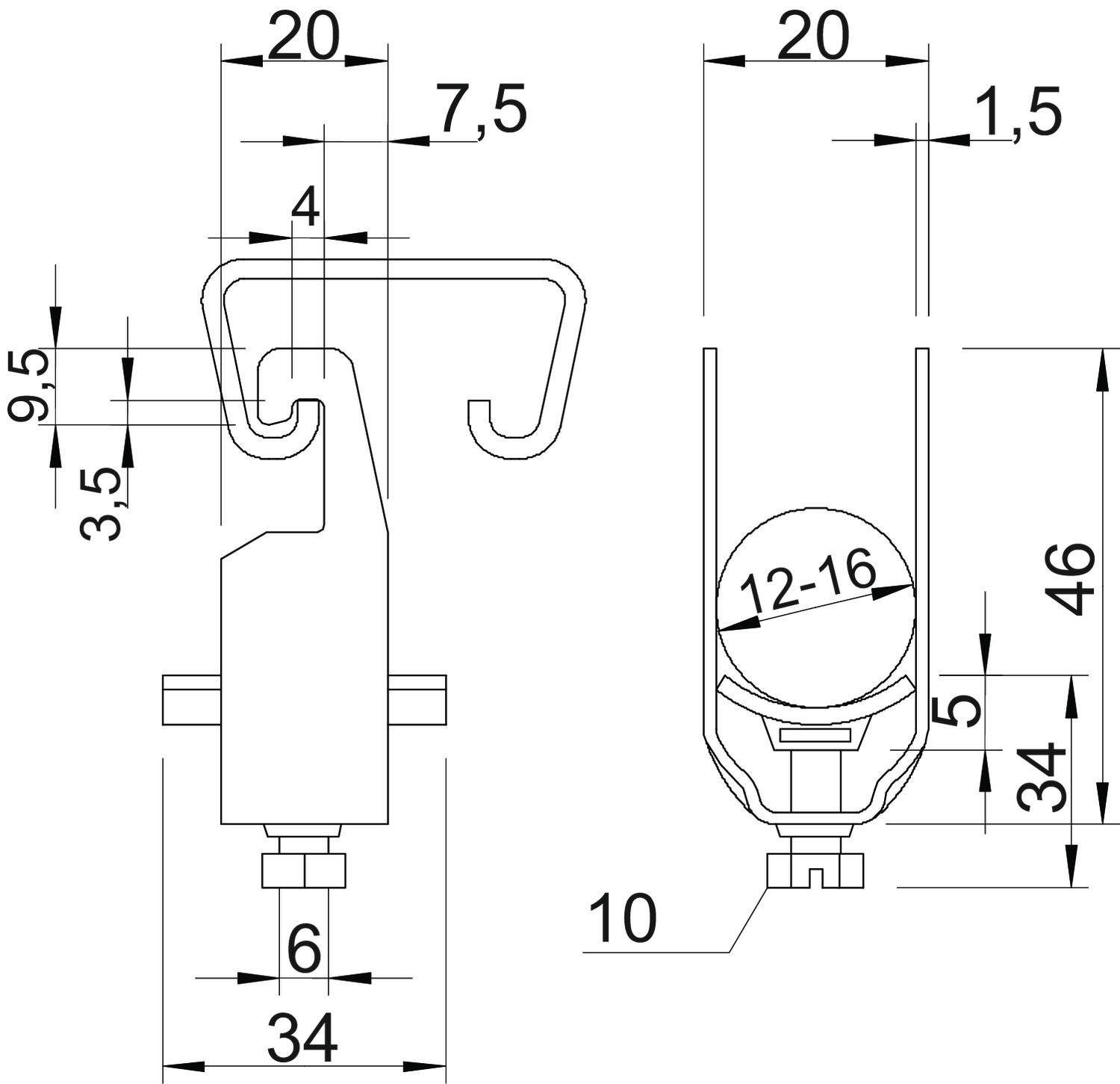 | Clamping range D, max. | 16 mm |