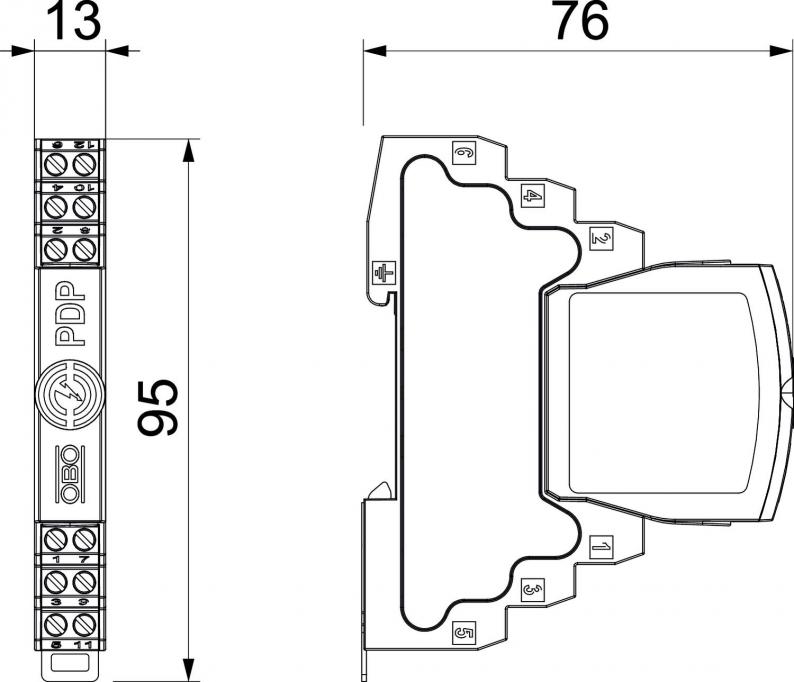 Earthing via: | Connection cable / DIN rail |