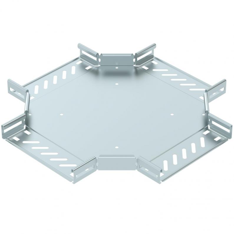 Cross-over for the creation of a horizontal branch, fitting for lock and screw-on cable trays of side height 35 mm. Screw connection with FRS truss-head screws and M6 combination nuts. Can be used in indoor areas. Fastening material must be ordered separately.
