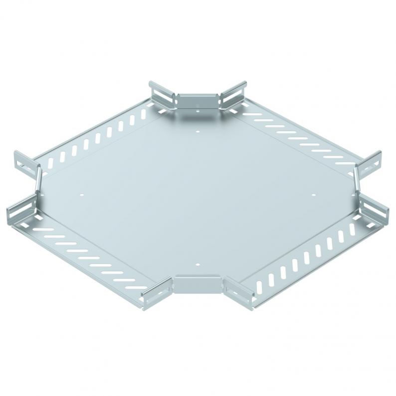 Cross-over for the creation of a horizontal branch, fitting for lock and screw-on cable trays of side height 35 mm. Screw connection with FRS truss-head screws and M6 combination nuts. Can be used in indoor areas. Fastening material must be ordered separately.