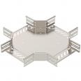 Cross-over for the creation of a horizontal branch, fitting for lock and screw-on cable trays of side height 60 mm. Screwless mounting with double clamps or screw connection with FRS truss-head screws and M6 combination nut. Can be used indoors and outdoors. Fastening material must be ordered separately.