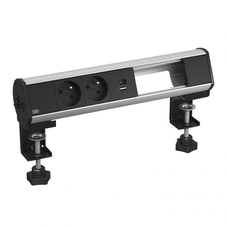 Deskbox with fastening clamp, 2 NF sockets, USB Charger