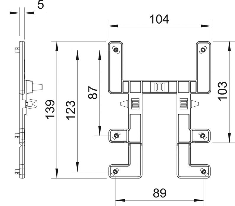 The fastening element BE TS GR can be used to attach OBO junction boxes, type T60 and T100, to mesh cable trays quickly and in a few actions.