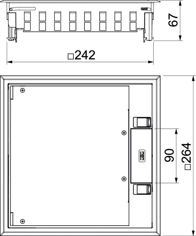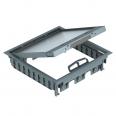 Service outlet with locking slider for up to 12 individual Modul 45 devices in 3 UT4 universal supports, use in trunking systems and system floors for indoor use.