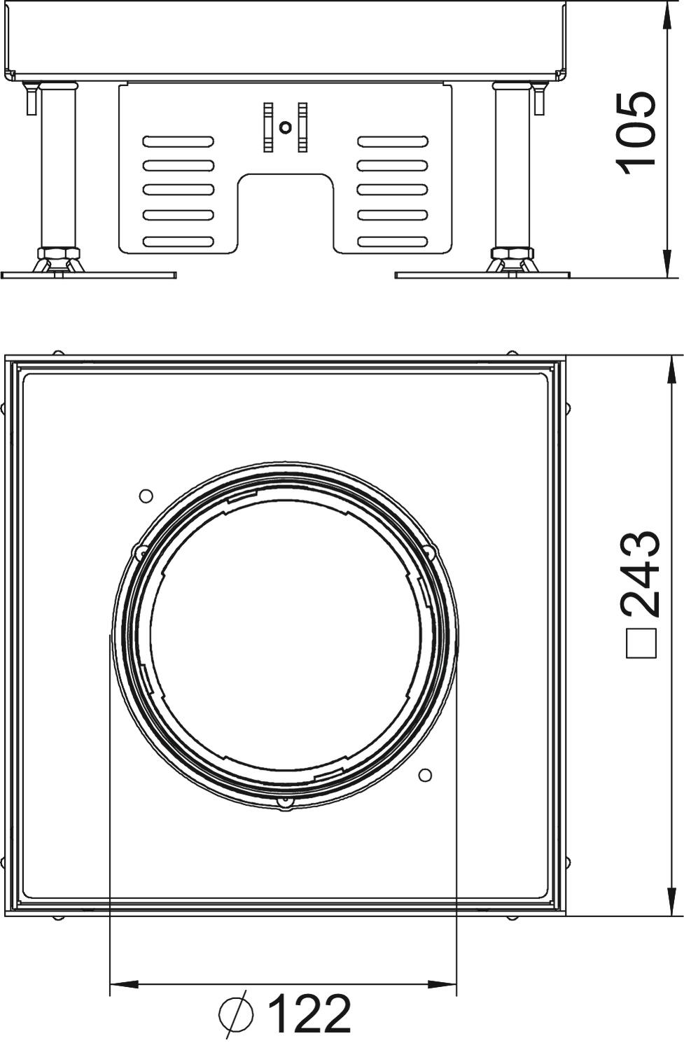 Height-adjustable cassette of nominal size 9 for tube body for installation of accessories in dry or wet-cleaned floors for indoor use .