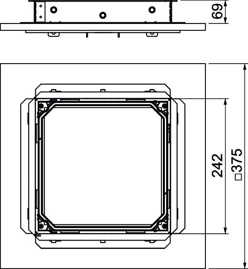 Height-adjustable and decouplable square cassettes are suitable for flushfloor device installation in UGD-3 underfloor connection boxes. Depending on the design, they are suitable for dry, moist or wet-cleaned floors. The cassette rests on the fixing bracket fastened in the top frame of the box, using which the cassette can be adjusted to the top edge of the floor covering. The fixing bracket decouples the cassette from the raw ceiling. The connection socket must have an appropriate installation opening and, for this reason, needs a blanking lid with an appropriate installation opening. The cassettes are made from stainless steel or brass. All the cassettes contain a 4 mm thick sheet steel plate, for safe absorption of the traffic loads. Suitable cassettes are available for different floor covering thicknesses of 20 and 25 mm. Only suitable for smooth floor coverings.