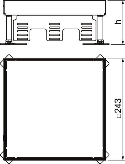 "Blank" height-adjustable cassette of nominal size 9 for the creation of an inspection opening. Installation in duct systems, raised and cavity floors in interior dry or wet-care floors. Load class 1 to 10 kN. Only suitable for smooth floor coverings.