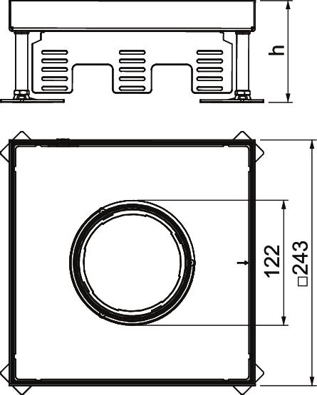 Height-adjustable square cassette, heavy duty, of nominal size 9, for the installation of accessories in trunking systems, raised and cavity floor in dry- or wet-cleanded floors indoors. Load class 1 to 10 kN.