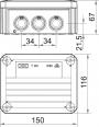 Junction box according to DIN EN 60670. Flame-resistant to DIN EN 60695/2/11, test temperature 650 °C. Impact resistance IK07 according to DIN EN 50102.