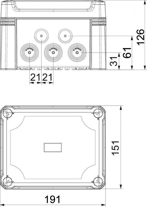 Junction box for the connection of cables and lines indoors and in outdoor areas. Rectangular design with knock-out entries. Suitable for wall and ceiling mounting with the option to fasten outside, inside or to mount via the corner domes. Particularly impact resistant with IK09. Cover with quick lock, sealable. Made from halogen-free and UV-resistant materials.