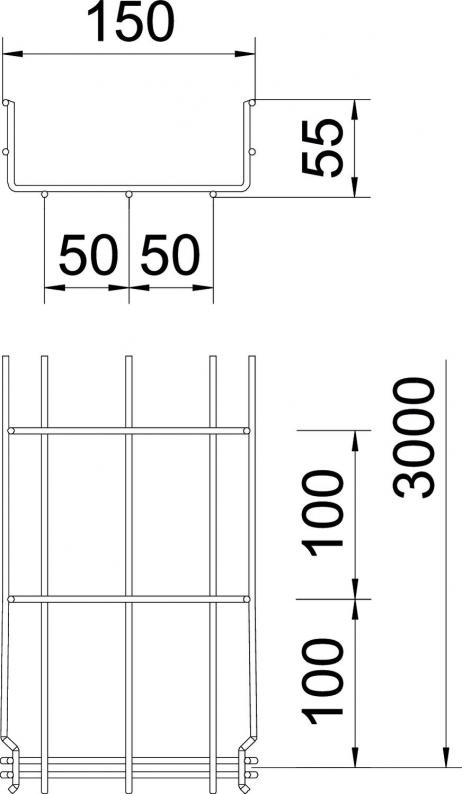 No additional connection components are required for the mesh cable tray, it is simply interlocked. The grid width is 50 x 100 mm (exception: GRM 55/50 = 20 x 100 mm).