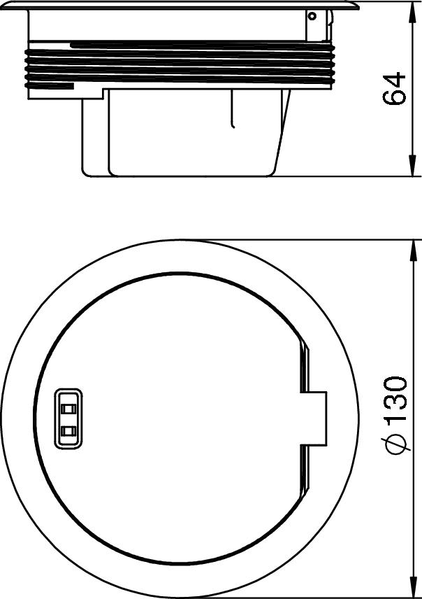 Round installation unit with floor covering protection frame for direct installation in the connection socket UDL2-120 for indoor use. When closed, the installation unit can be wet-cleaned. The minimum installation depth is 70 mm.
