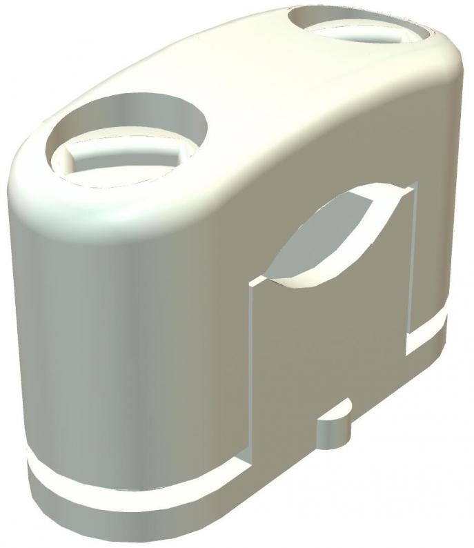 With plastic screws, so corrosion-protected, with slot for fastening with wood screws or 5 mm knock-in anchors.