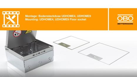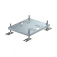 Square floor box for use in dry-cleaned cavity and screed floors in indoor areas. Installation housing with pre-marked insertion openings for pipes (M25). Empty housing for up to 2 UT3 universal supports for up to 6 Modul 45 ® devices. Cover adjustable to top edge of floor covering using four height-adjustment supports. The minimum installation depth is 95 mm, the height-adjustment range + 30 mm.