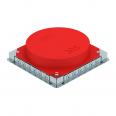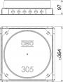 Underfloor outlet box with fixed, unchangeable installation opening of Ø 305 mm for an installation unit of nominal size R9. The mounting opening is created using the screed protection cover contained in the scope of supply. The underfloor box possesses installation openings for a 2 or 3-compartment sheet steel underfloor duct of nominal size 25038 as well as six M20 or M25 installation pipes on all four sides. The box is principally suited for use in floor structures in cement screed with a structure height of up to 95 mm.
