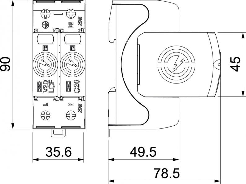 V20 surge arrester, leakage current-free, 1-pole + NPE