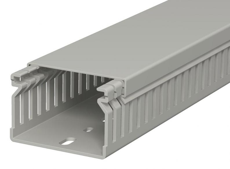 Wiring duct, incl. cover and base perforation, for horizontal and vertical routing of electrical cables in the switchgear cabinet. Designed as a metric duct. The nominal dimension of the system size corresponds to the internal dimension of the duct. Retainers are broken out without tools. The flush-floor routing of cables is possible through predetermined break points. Tested to DIN EN 50085-2-3. Special lengths on request.